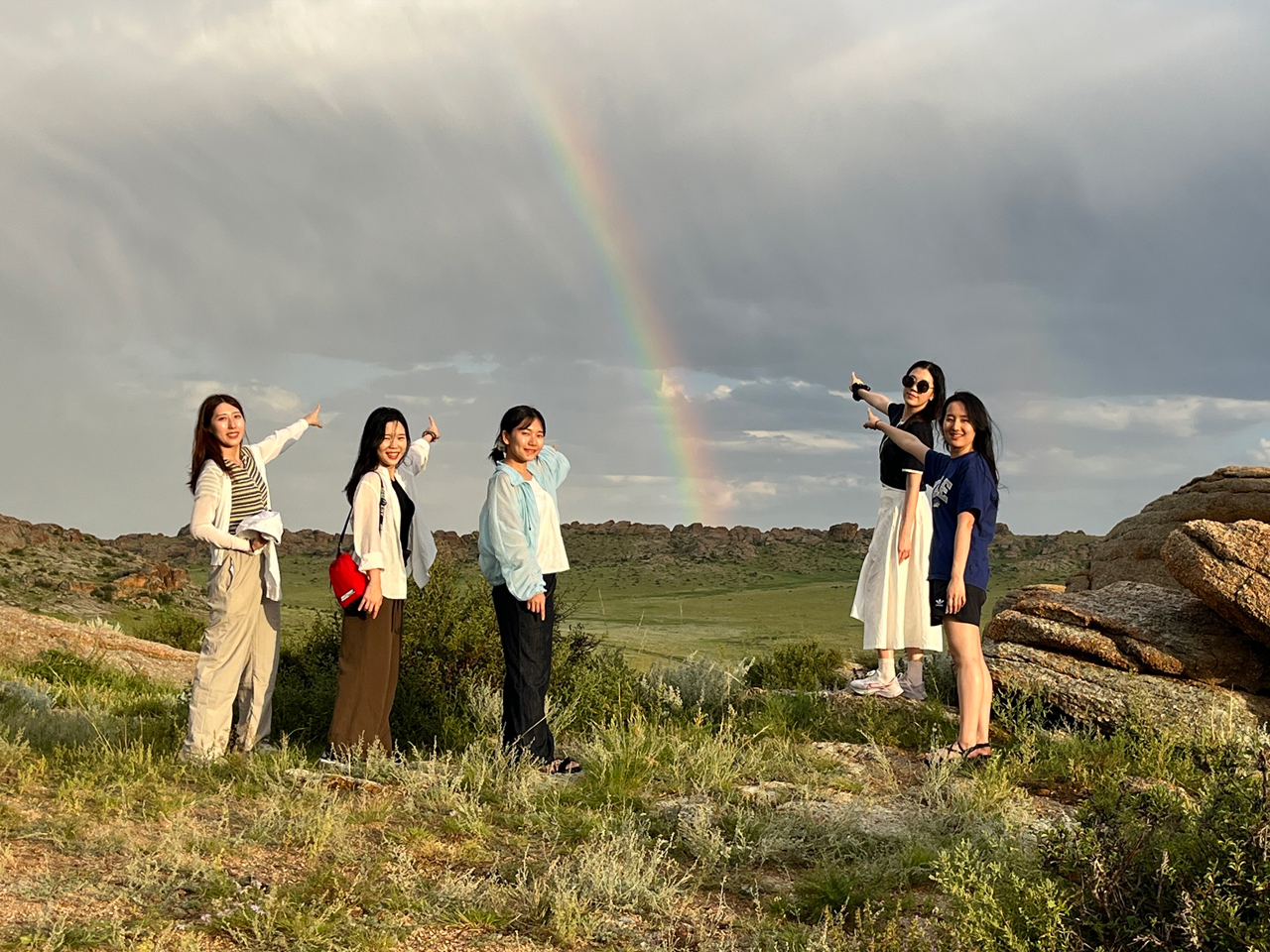 몽골에서의 첫 번째 목적지는 ‘바가가즈링 촐로’라는 곳이다. 바위로 된 유적지 같은 곳인데, 갑자기 비가 쏟아져서 홀딱 젖어버렸다. 여담으로, 몽골 사람들은 비를 맞는 것을 좋아한다고 한다. 비가 살짝 그칠 때쯤, 엄청나게 크고 선명한 쌍무지개를 생애 처음으로 볼 수 있었다.