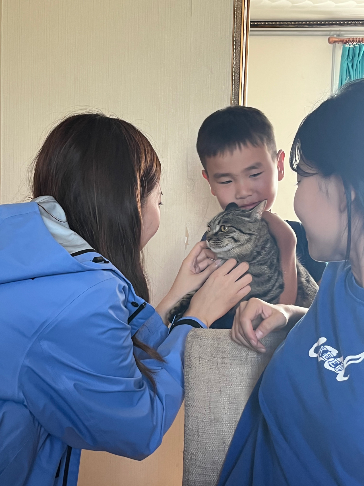우리에게 고양이를 보여주는 막내 아드님