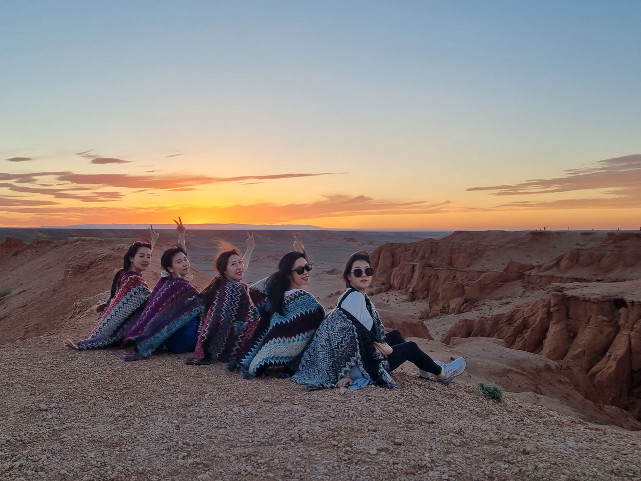 마지막으로 사막에서 사진이 예쁘게 나오는 에스닉 판초도 알리 익스프레스를 통해 미리 직구했다. (사실 판초는 멕시코의 의상인데, 이상하게도 몽골의 배경과 참 잘 어울린다...) 아래 사진은 회사로 배송해 오자마자 신나서 바로 뜯어 입어본 단체 착용샷이다.