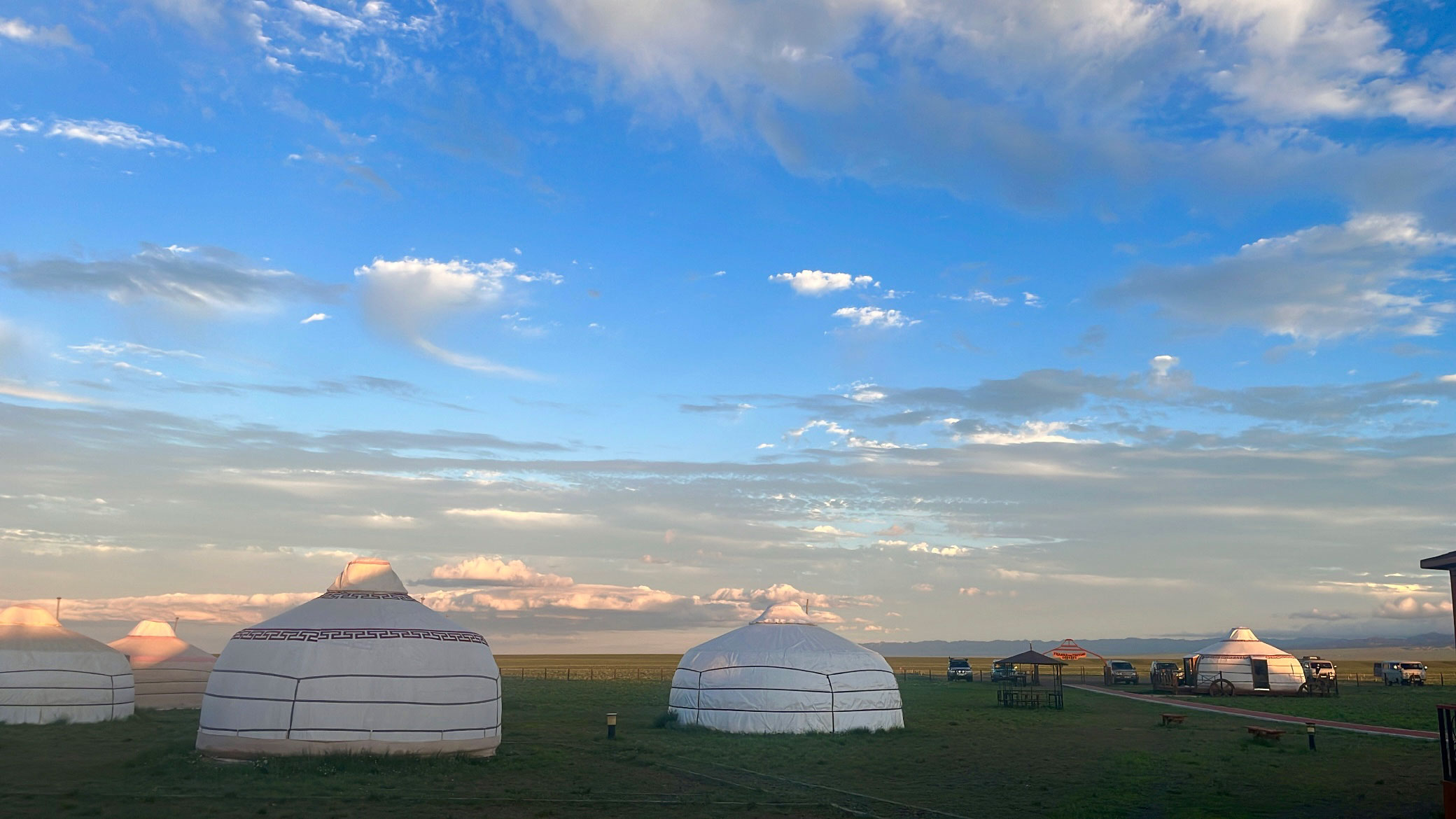 울란바토르 공항에 도착하니, 가이드님과 기사님 그리고 귀여운 푸르공 차량이 우릴 반겨주었다. 대충 공항에 있는 마트에서 장을 보고, 바로 출발했다. 공항에서 벗어난 지 얼마 안 됐을 때 정말 끝없는 초원이 눈앞에 펼쳐졌다. 산도 없고 작은 언덕조차 없었다. 그리고 미세먼지도 없었다. 지평선까지 초원이 너무 잘 보였다. 우리나라와 사뭇 다른 풍경이 굉장히 이국적으로 느껴졌다.