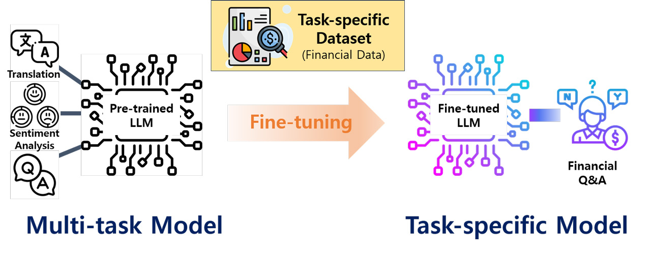 파인튜닝이란? 파인튜닝은 사전에 학습된(Pre-trained) 모델을 어떤 작업(Task-specific)과 관련된 데이터로 추가 학습시켜 그 작업을 수행하는 데 적합하도록 조정하는 과정이다.