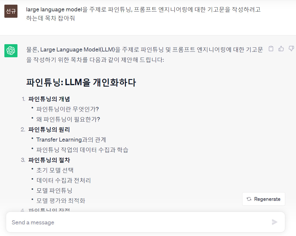 회사로의 복귀는 약 4개월 정도 남았지만, 이 기간을 최대한 활용하려고 노력하고 있어요. 동료들과 오랜만에 만나서 이야기 공유하고 싶어요. 언제든 연락 주세요. 자 그럼 지금부터 AI를 친구로 만들어 줄 파인튜닝과 프롬프트 엔지니어링에 대해 살펴보겠습니다.