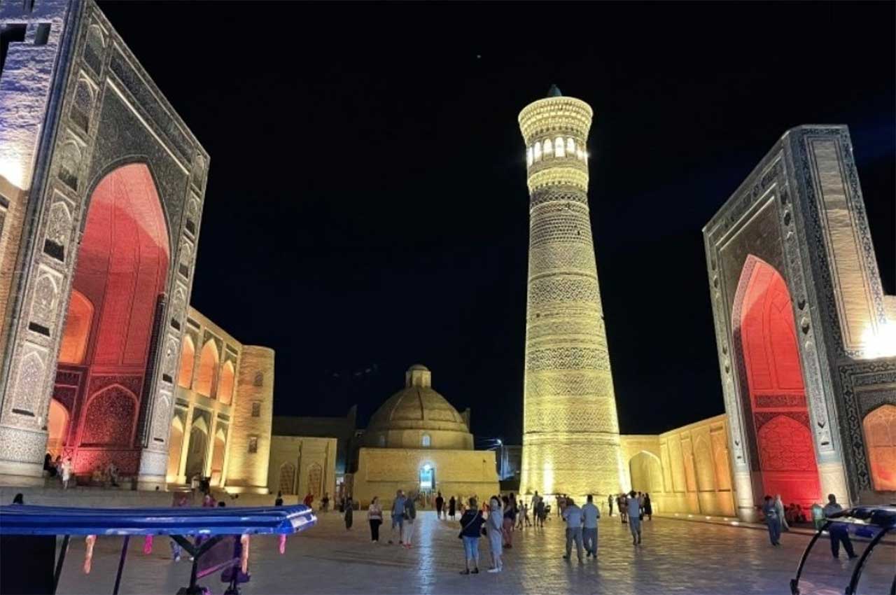 부하라 칼란미나렛, 모스크, 마드라사 삼총사의 야경