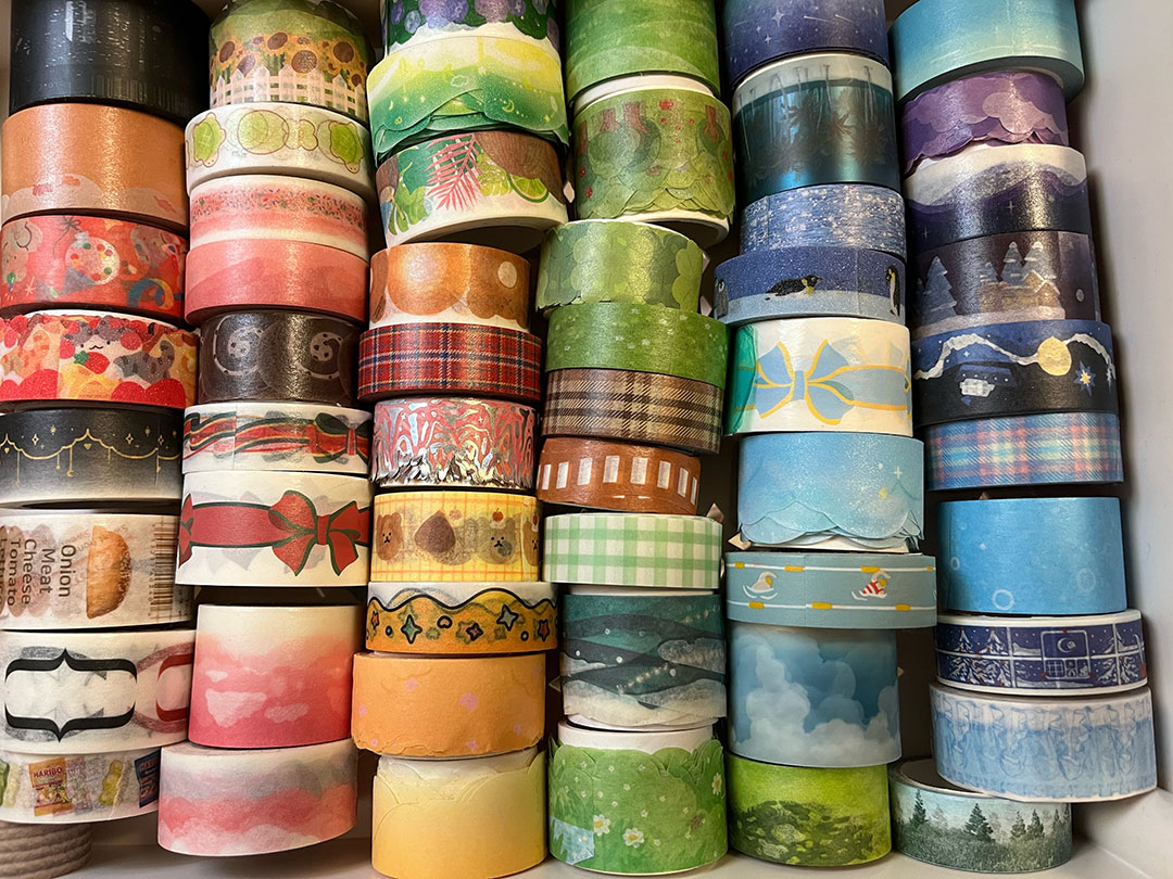 마테는 마스킹 테이프의 줄임말로, 원래는 페인트칠 할 때 페인트가 묻으면 안 되는 부분을 가리는 데에 썼다고 해요. 하지만 요즘 다꾸를 하는 분들 사이에서는 배경을 꾸미거나 포인트를 주는 용도로 사용하고 있어요!