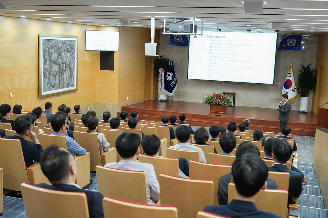 우리 원은 2024년 5월 31일 역삼 본관 1층 강당에서 창립 제38주년 기념식을 개최했습니다. 이날 행사는 원장님 기념사, 우수 직원 및 단체 시상, 창립기념일 축하 댓글 이벤트 우수작 발표, 기념 촬영 순으로 진행되었습니다. 원장님의 뜻깊었던 기념사는 원텔에 게시되어 있는데, 틈틈이 읽어보면 업무를 해나감에 있어 좋은 이정표가 될 것 같습니다.