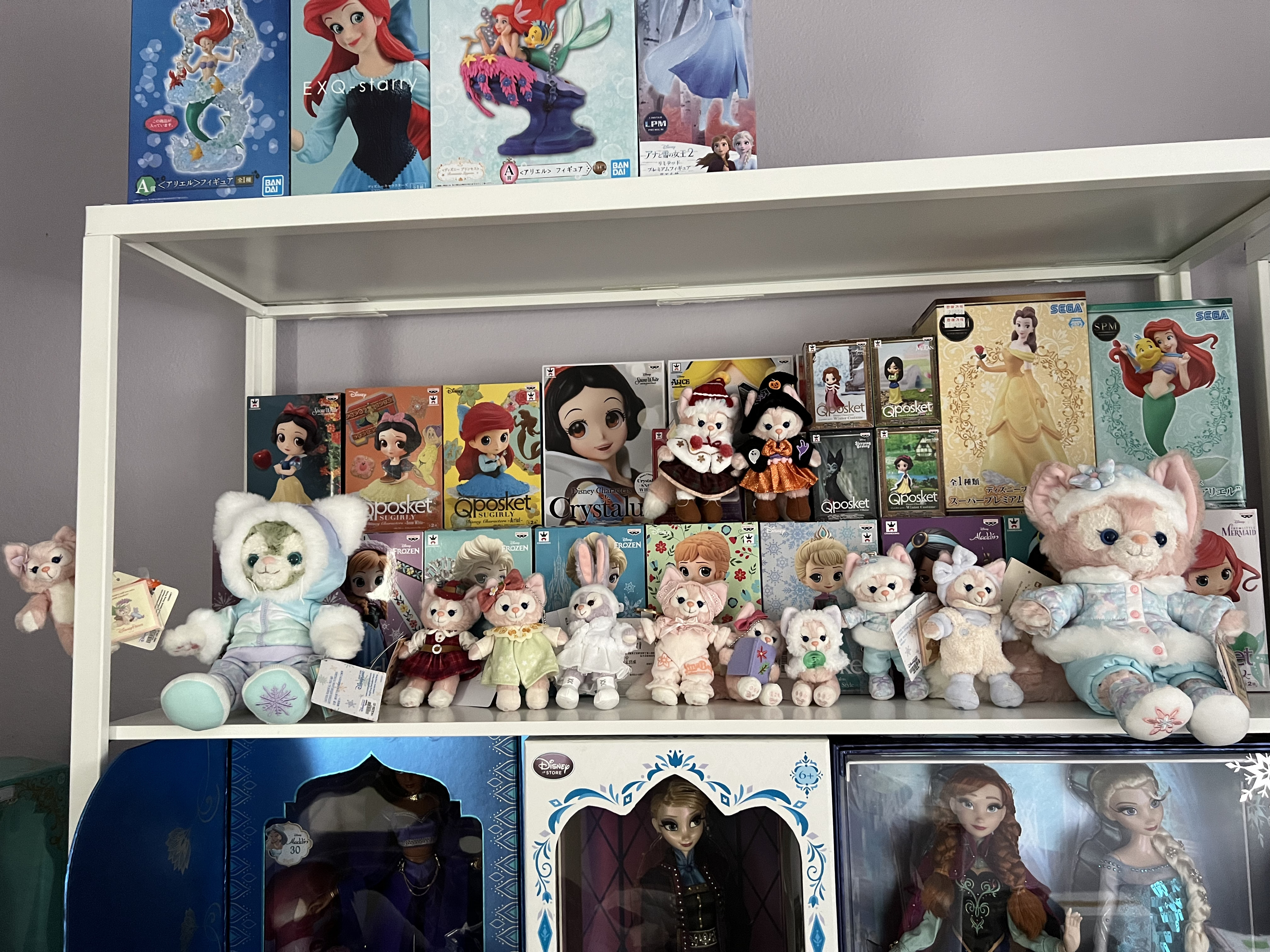 파크 굿즈 외에도 빈티지 굿즈, 각종 한정판 굿즈들이 다양한데, 저는 디즈니 한정판 인형을 주로 모으고 있습니다. 한정판 인형은 매년 3~4개 정도의 캐릭터로 디즈니가 발매하고, 디테일이 매우 뛰어나 많은 사람이 수집하고 있습니다. 아직 국내에는 컬렉터가 많지는 않지만, 해외에서는 인기가 꾸준한 걸로 알고 있습니다. 그리고 아무래도 한정판이다 보니 예전에 발매되었던 인기 캐릭터의 경우, 현재 프리미엄이 엄청 붙었습니다. 그 예로 영국 해러즈 백화점에서 전 세계 500개 한정으로 발매된 겨울왕국 한정판 인형 세트는 현재 몇천만 원을 넘고 있다고 합니다...