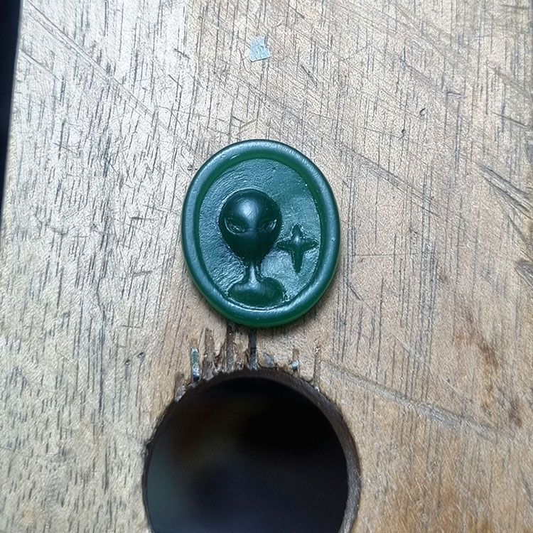 형태를 어느 정도 잡아줬으면 보다 세밀한 작업을 진행할 차례입니다. 인두기를 이용해 왁스를 올리고, 조각도로 모양을 만들거나 글자를 새겨주는 작업입니다. 작업 도중 글씨를 잘못 새기는 등 실수해도 괜찮습니다. 인두기로 왁스를 올려 수습하고 다시 진행할 수 있습니다.