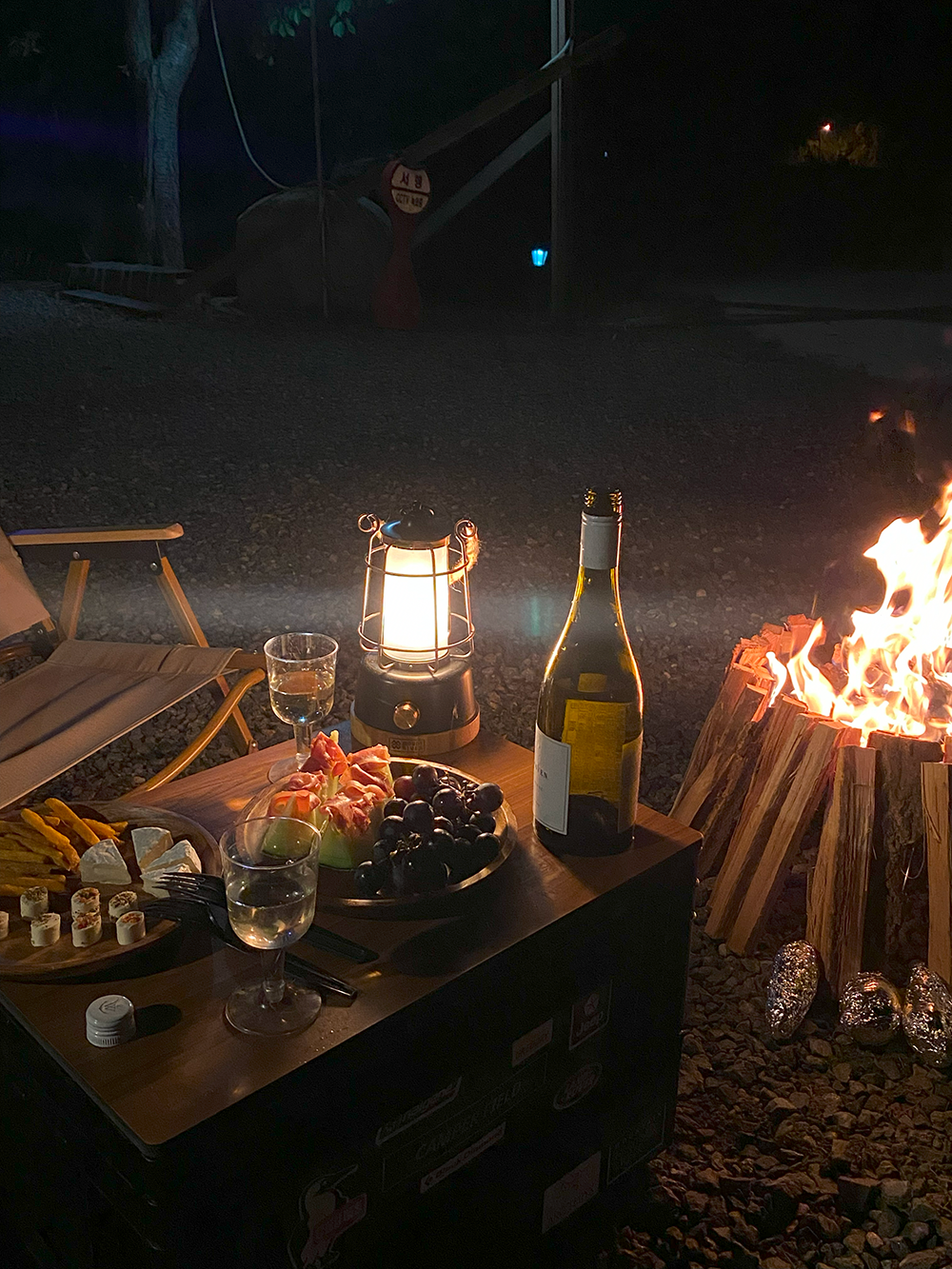- 저녁을 먹고 나면 캠핑의 꽃, 캠핑의 피날레 불멍 타임입니다! 화로 주위로 둘러앉아 불멍을 하며 도란도란 얘기하는 이 시간이 너무 좋아서 캠핑을 계속하게 되는 것 같아요.