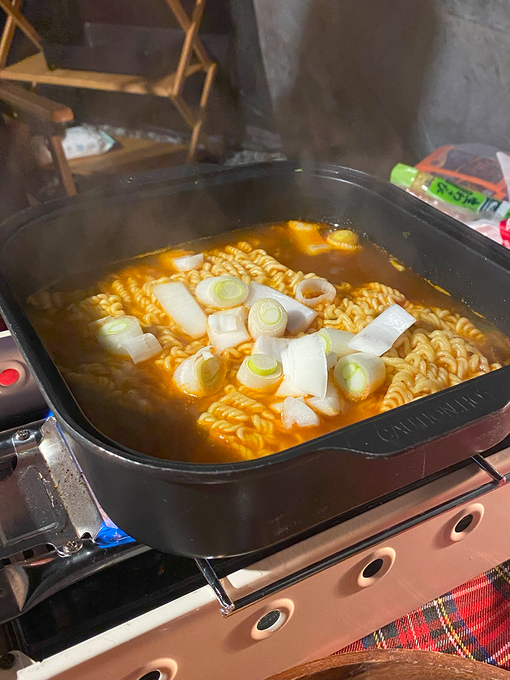 - 한강 뽀글이를 좋아하는 분들이라면, 야외에서 먹는 라면이 얼마나 꿀맛인지 아실 겁니다! 둘째 날 아침 겸 점심은 대개 라면(Simple is the Best)으로 떼웁니다! 아주 가끔 레이트 체크아웃을 하면 토스트나 크로플을 만들어 먹을 때도 있어요.