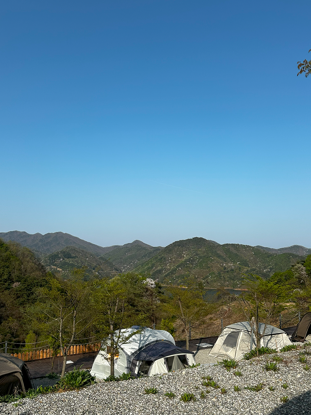 - 아침이 밝으면 보통 새소리 or 아이들 소리에 깨곤 합니다⋯ 텐트에서 나와 뷰멍을 때리는 걸로 하루를 시작합니다.
