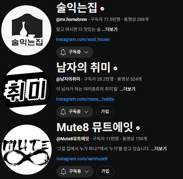 우선 가양주(家釀酒)는 집 가, 빚을 양, 술 주라는 한자로 이루어져 있습니다. 말 그대로 ‘집에서 빚는 술’이라는 뜻입니다. 제가 즐겨 보는 관련 유튜브 채널은 ‘술익는집’, ‘남자의 취미’, ‘뮤트에잇’입니다. 양조 관련 지식을 알려준다기 보단 도파민 쪽에 치중된 채널이지만, 그렇기에 가양주 입문에 적절한 채널 같습니다.