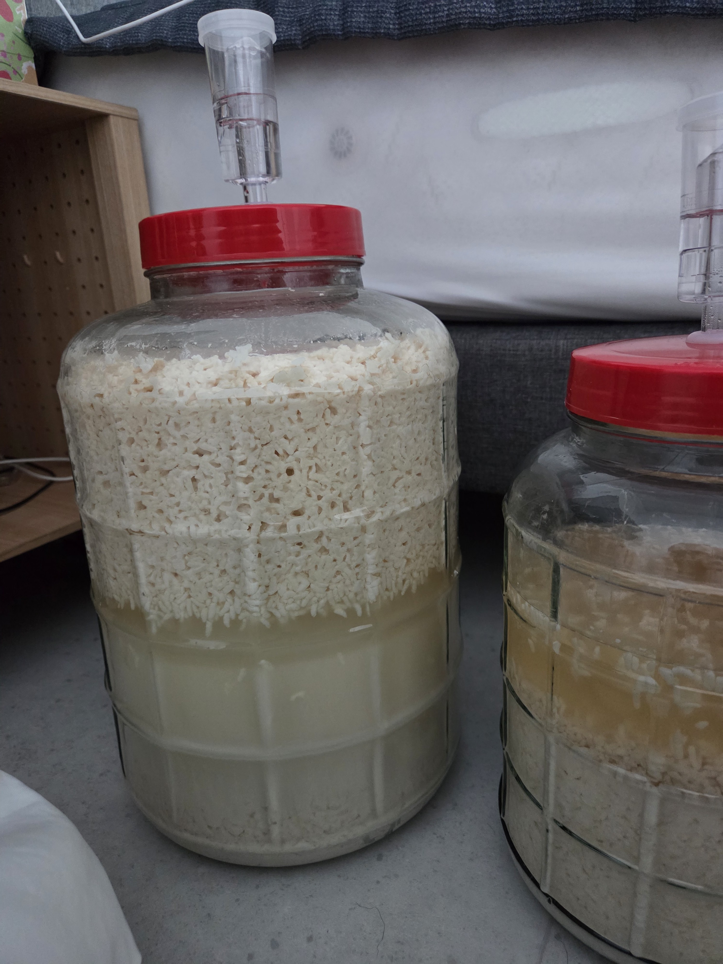 - 4. 물과 쌀이 분리되면 발효 완료.