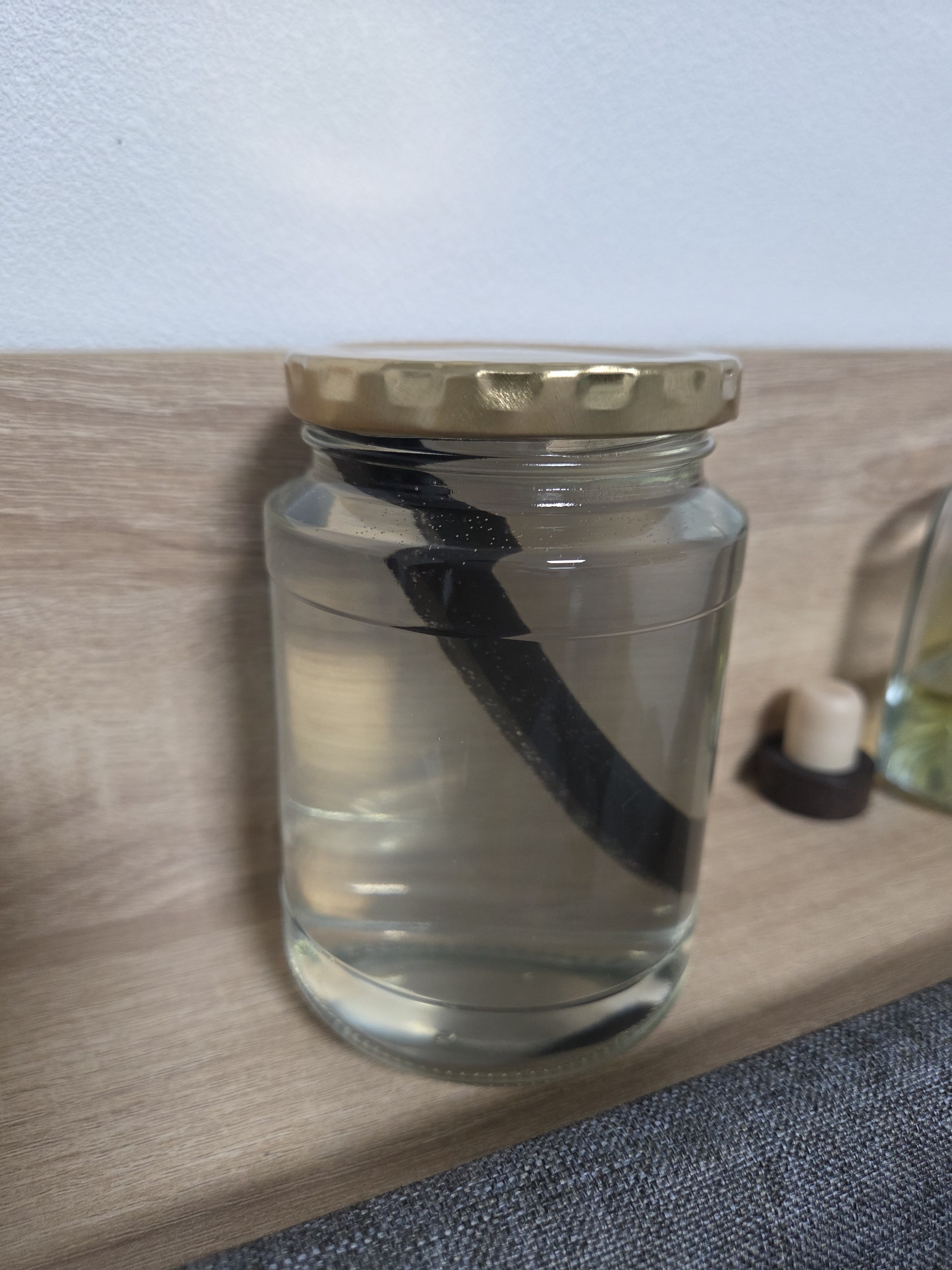 다른 술을 담으려고 빼던 중 다시 사진 찍어서 반쯤 차 있습니다. -