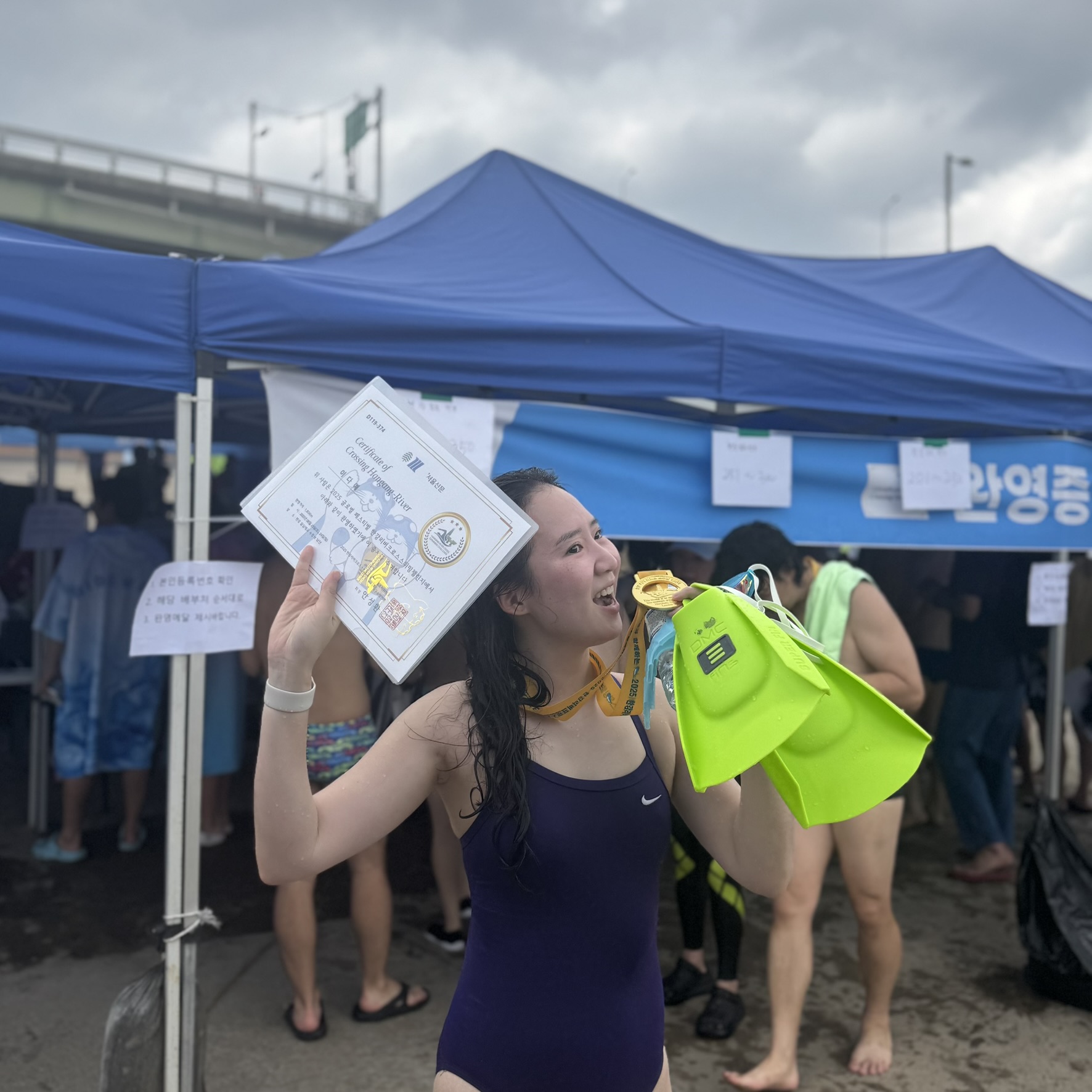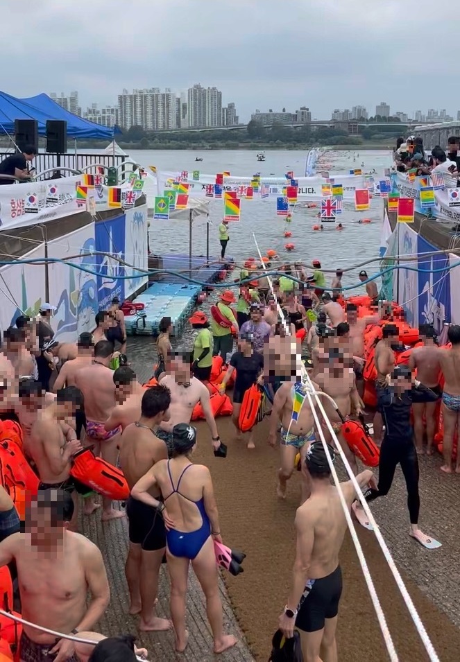 러닝은 다양한 대회가 있어서 취미 러너들도 많이 참여를 하는 걸로 알고 있는데 러닝과 다르게 수영은 동호회에 가입해야만 참가할 수 있는 대회가 많았어요. 수영장에서 기록을 재는 대회는 참가가 어려울 것 같아서 누구나 쉽게 참가 가능한 대회를 찾아보다가 한강을 수영으로 건너는 ‘한강 크로스 스위밍 챌린지’(줄여서 한크스)를 발견하게 되었습니다.ʕ ꈍܫꈍʔ