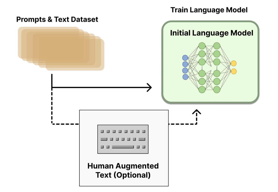 (2단계, 지도학습) 사람이 학습데이터에서 신뢰할 수 있는 질문과 답안을 직접 샘플링한 후 이 데이터를 활용하여 초기 언어모델을 업데이트하는 지도학습(Supervised fine-tuning) 수행