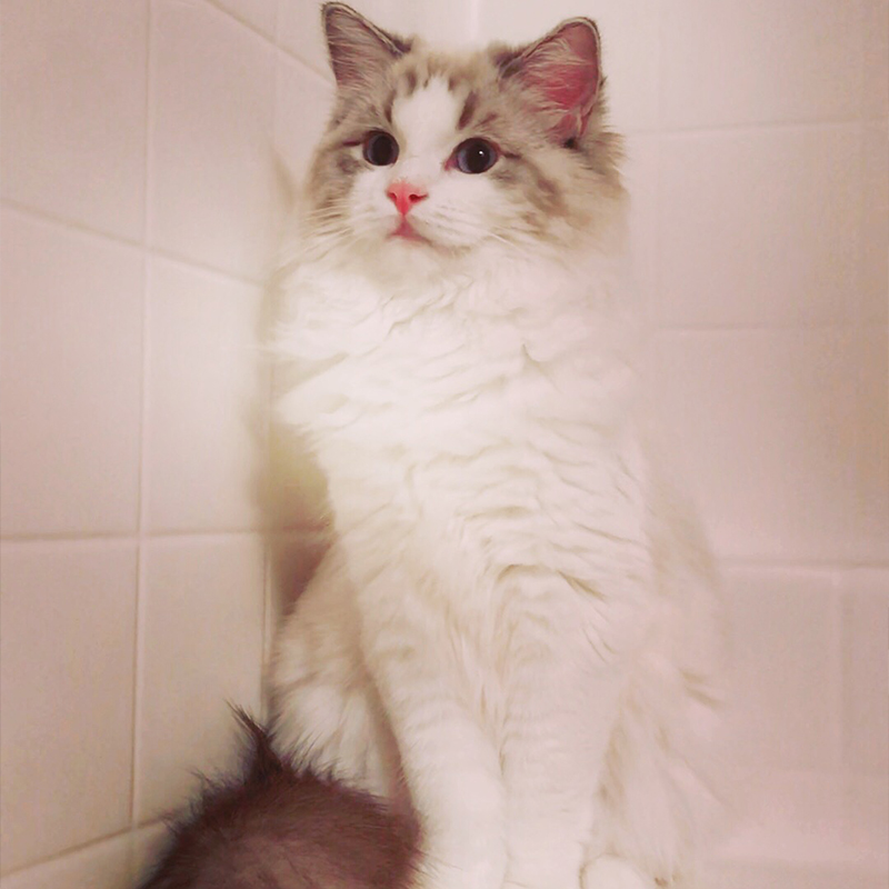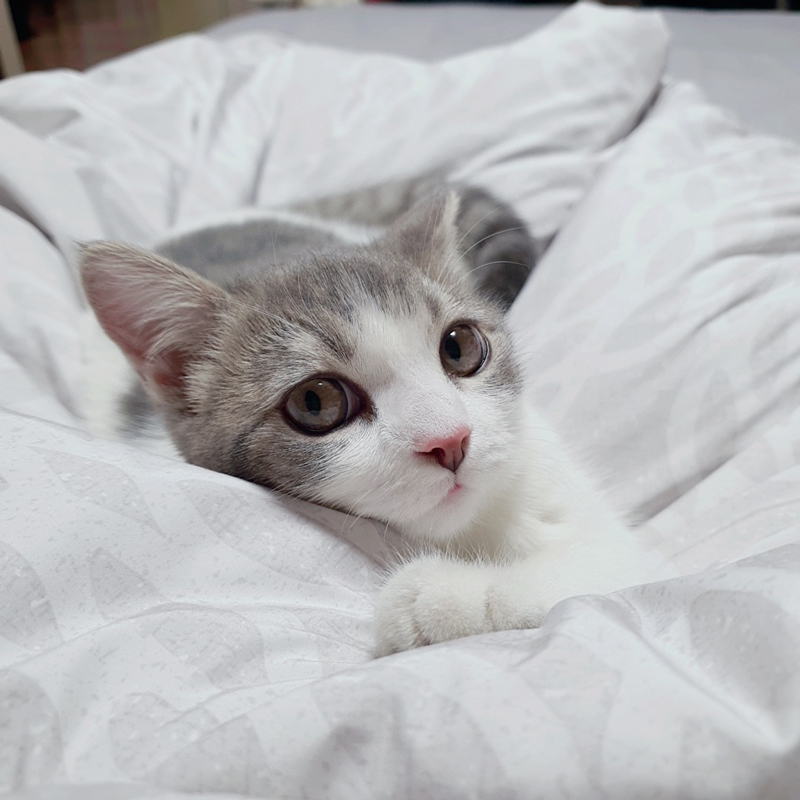 모카는 파란 눈에 길고 부드러운 털을 가진 랙돌입니다. 노스캐롤라이나에서 태어난 미국 국적의 애교 많은 수다냥이예요. 낯선 사람이 와도 일단 드러누워 핑크 뱃살을 공개하는 것으로 보아 성격은 파워 E!!! 하지만 아빠 집사한테는 아직도 낯을 가린답니다. 아마도 ‘엄마 집사 >>> 츄르=장난감 >>> 아빠 집사’ 순으로 좋아하는 것 같아요... 강아지처럼 이름을 부르면 달려오지는 않지만 하루 종일 누워있기, 하고픈 것 하게 해줄 때까지 떼쓰기, 엄마 집사 퇴근하면 마중 나가기, 골골송 부르며 꾹꾹이 하기는 잘한답니다. 모카야! 아무래도 좋으니 지금처럼 늘 함께하자!