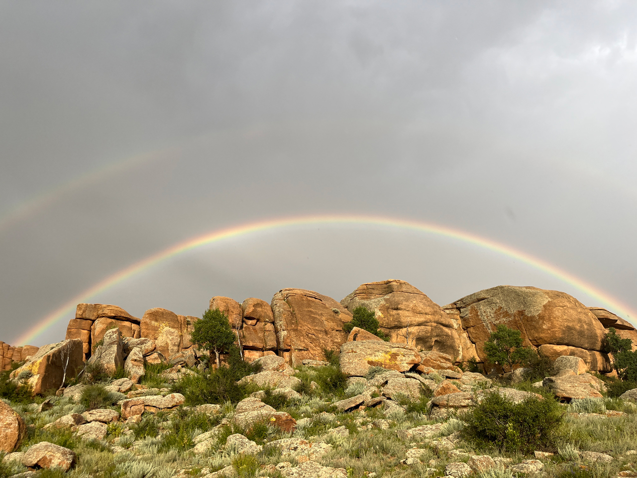 몽골에서의 첫 번째 목적지는 ‘바가가즈링 촐로’라는 곳이다. 바위로 된 유적지 같은 곳인데, 갑자기 비가 쏟아져서 홀딱 젖어버렸다. 여담으로, 몽골 사람들은 비를 맞는 것을 좋아한다고 한다. 비가 살짝 그칠 때쯤, 엄청나게 크고 선명한 쌍무지개를 생애 처음으로 볼 수 있었다.
