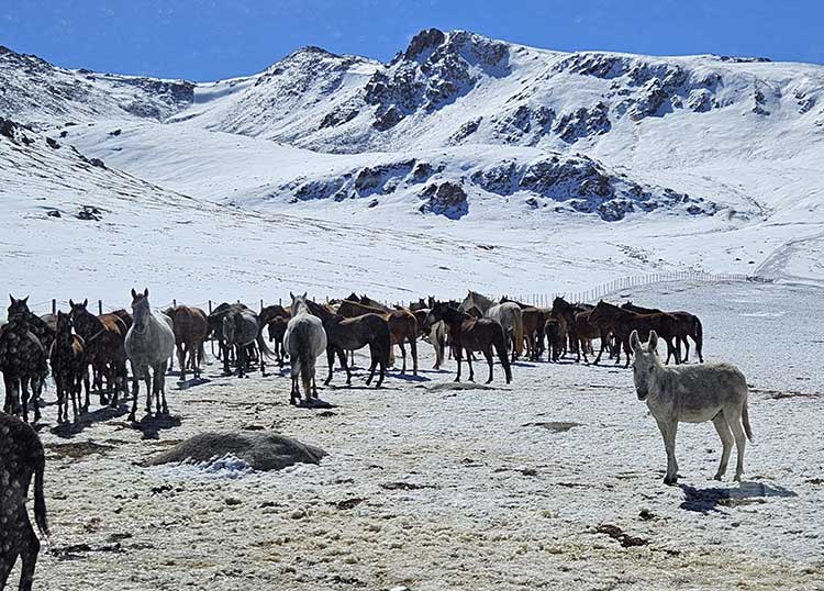 드넓은 초원과 유르트를 주변으로 말과 소 등이 한가로이 풀을 뜯고 있었고 살포시 흐르는 시냇물을 바라보며 자연 속의 따뜻한 노천탕에 몸을 담그면 참으로 세상에 없는 곳에 사는 기분일 것 같았다. 해발 2,600m의 1차 캠프에서 6시간 올라가면 해발 3,900m의 ‘알라쿨패스(Alakul Pass)’에 다다른다. 나는 눈이 많이 내린 탓에 1차 캠프에서만 즐겼다.
