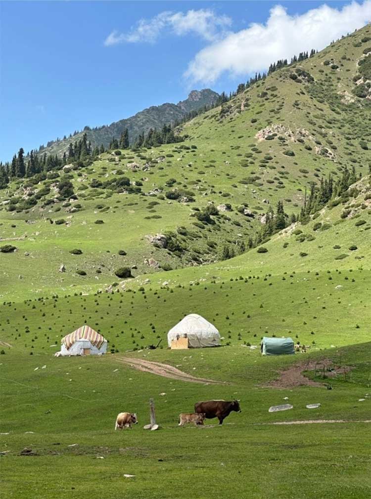 그리곤, 일곱 마리 붉은 황소를 품은 계곡 제티오구즈(Jety-Oguz)와 아라벨 고원(해발4,000m)에 있는 바르스콘 협곡(Barskoon Gorge) 글램핑장에서 대자연을 만끽하며 별로 수 놓인 밤하늘의 풍광을 보는 것도 단연 잊을 수 없는 추억이 되었다.