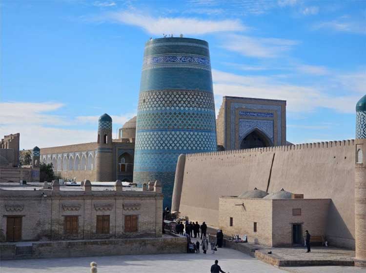 이찬칼라는 실크로드 대상들이 사막을 건너 이란으로 가기 전에 마지막으로 휴식을 취하던 곳으로, 약 10m 높이의 성벽으로 둘러싸여 있는 옛 히바 오아시스의 도심지다. 이 성안에는 각종 미나렛, 마드라사, 모스크 등 많은 유적지가 있다.