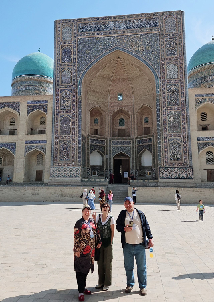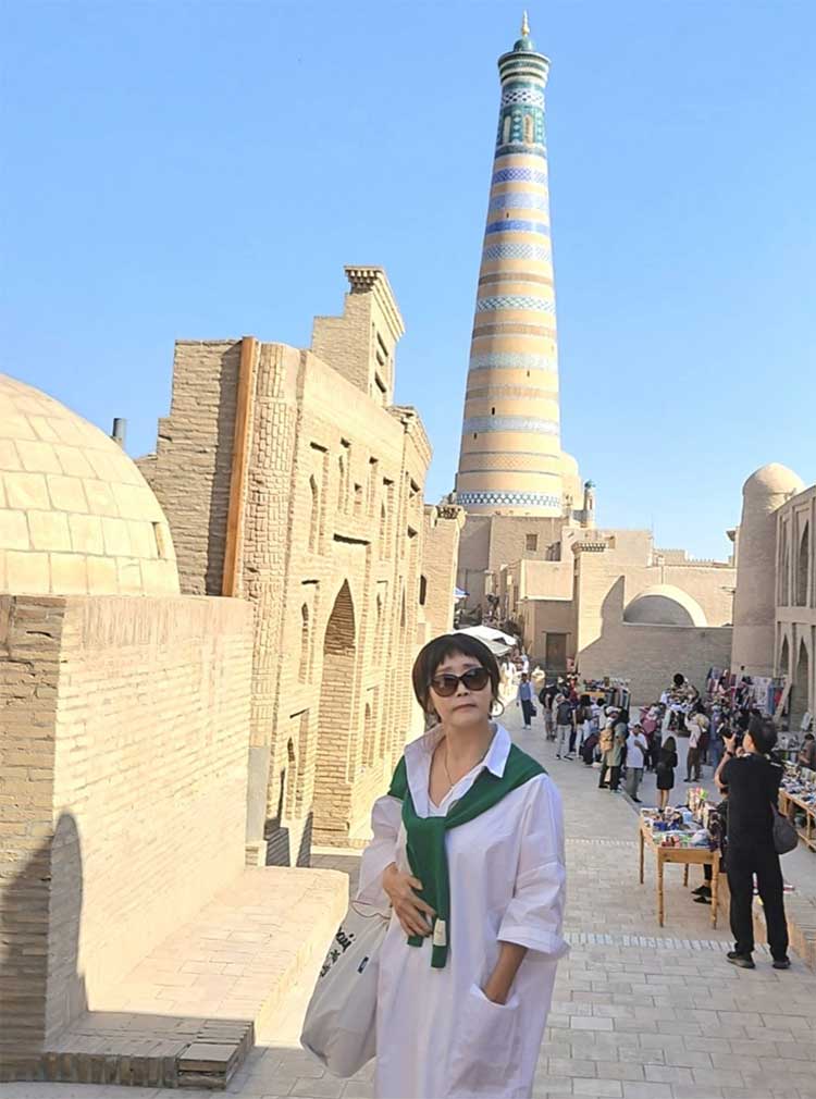 사실, 유적지 자체를 선호하고 찾아다니는 편은 아닌데, 우즈베키스탄 유적지 관광은 새로운 느낌들이라 호기심이 생기고 재미로 보는 것이 즐거웠다. 미르아랍 마드라사 앞 광장에서 어디서 본 듯한 현지인들이 있었는데, 알고 보니 <걸어서 세계속으로>에 나왔던 여성 현지 가이드였고, 기념으로 사진 촬영을 했다.
