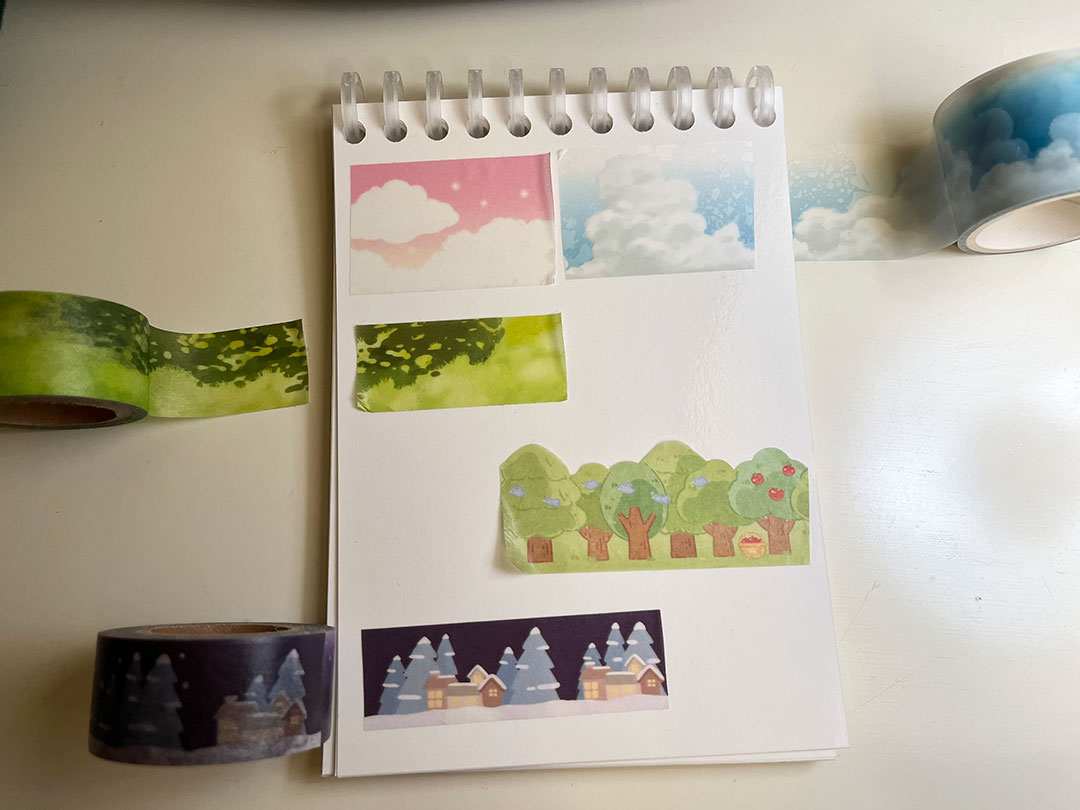 마테는 마스킹 테이프의 줄임말로, 원래는 페인트칠 할 때 페인트가 묻으면 안 되는 부분을 가리는 데에 썼다고 해요. 하지만 요즘 다꾸를 하는 분들 사이에서는 배경을 꾸미거나 포인트를 주는 용도로 사용하고 있어요!