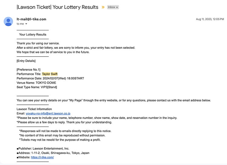 도쿄 콘서트 티켓 한 장을 얻기까지 수도 없이 받았던 낙첨 메일