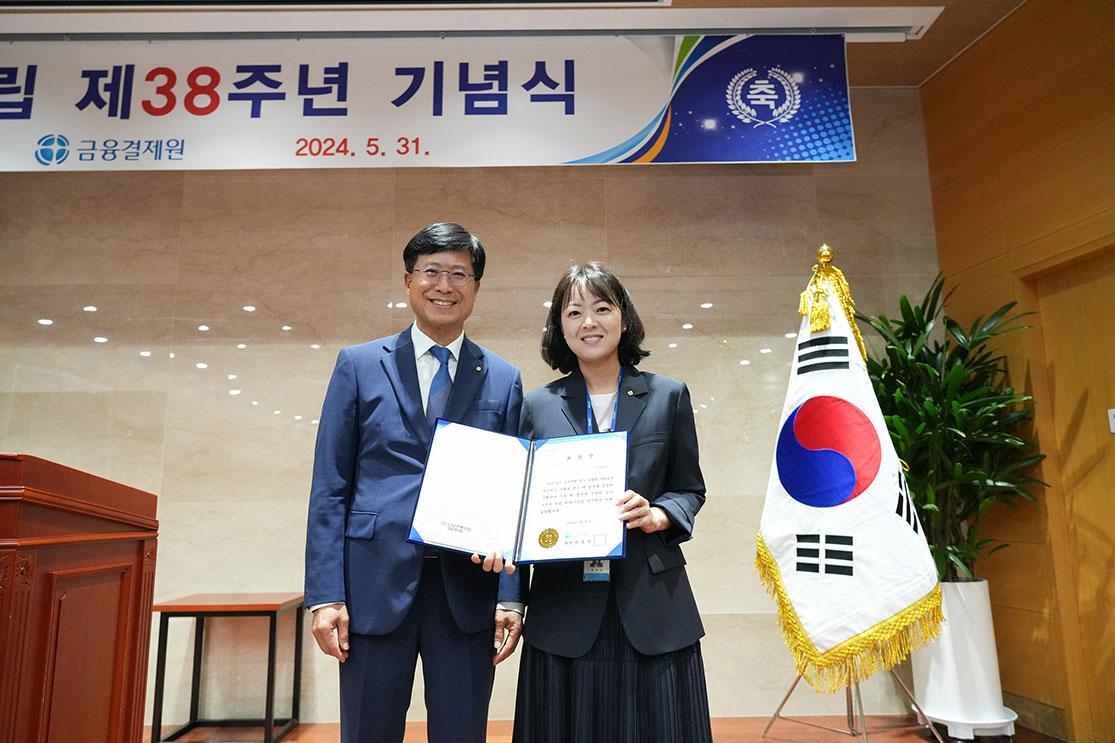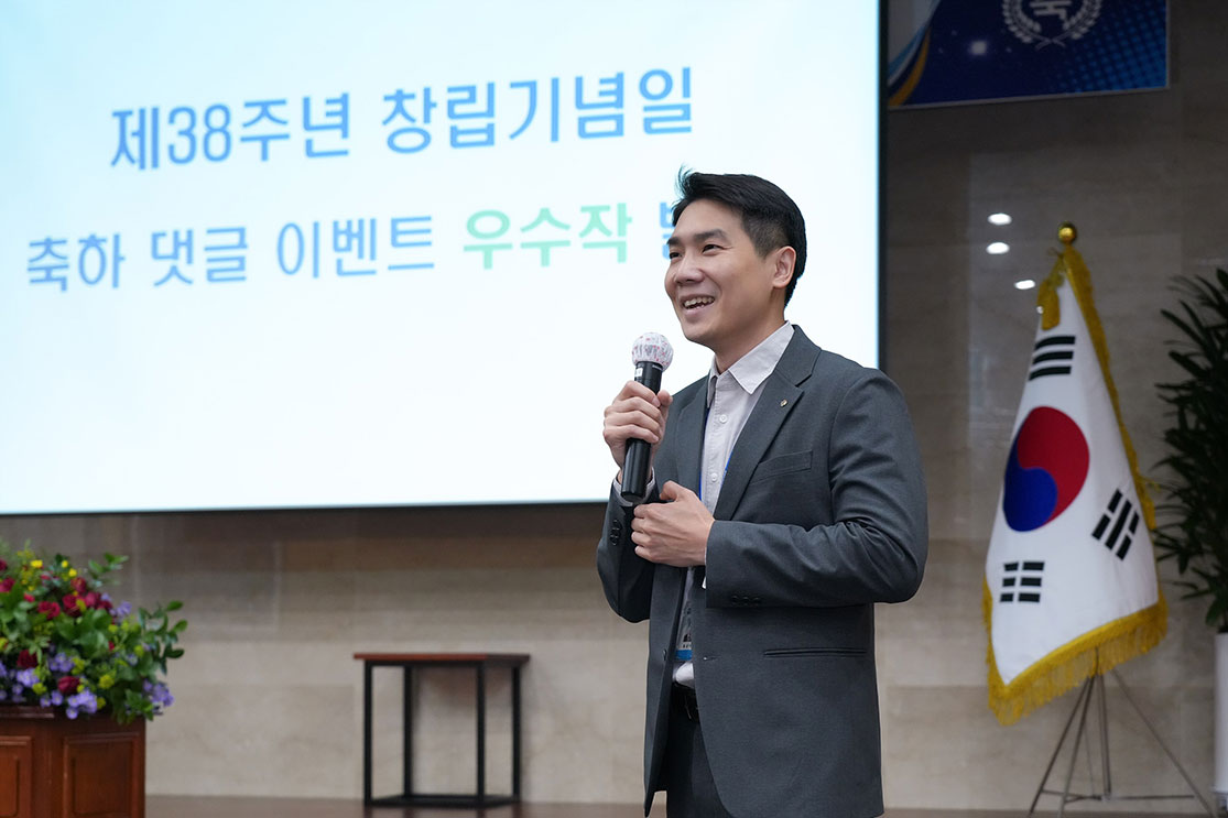우리 원은 2024년 5월 31일 역삼 본관 1층 강당에서 창립 제38주년 기념식을 개최했습니다. 이날 행사는 원장님 기념사, 우수 직원 및 단체 시상, 창립기념일 축하 댓글 이벤트 우수작 발표, 기념 촬영 순으로 진행되었습니다. 원장님의 뜻깊었던 기념사는 원텔에 게시되어 있는데, 틈틈이 읽어보면 업무를 해나감에 있어 좋은 이정표가 될 것 같습니다.