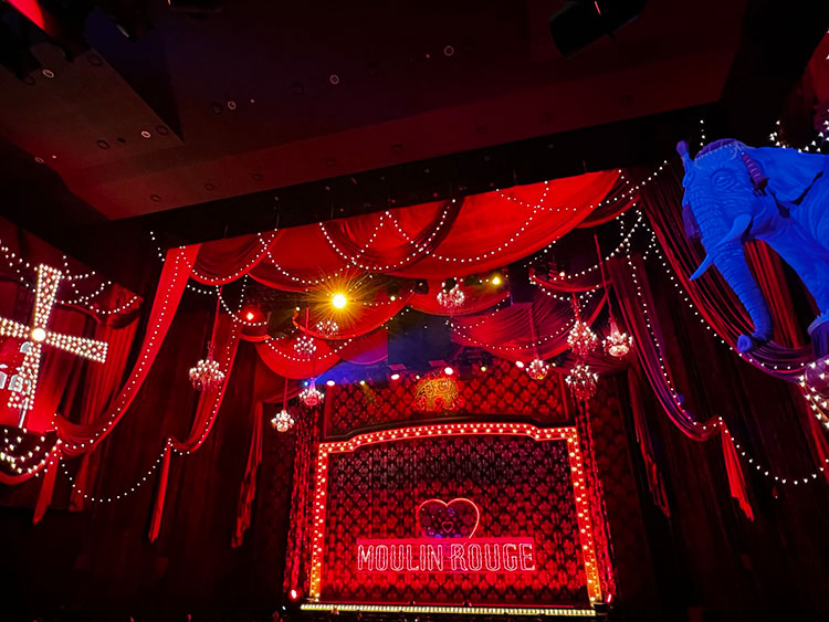 <물랑루즈!>는 2023년도 저의 최애 작품이었는데, 무대부터 너무나 화려해서 감탄이 절로 나왔습니다. 무대는 온통 빨간색으로 화려하게 빛나고 2층에는 빨간 풍차와 여주인공 ‘사틴’의 코끼리 모양 방도 설치되어 있어, 제가 마치 19세기 파리 클럽에 들어온 기분이 들었습니다. 무대 전환도 많아서 눈과 귀 모두 즐거운 작품이라 생각합니다.