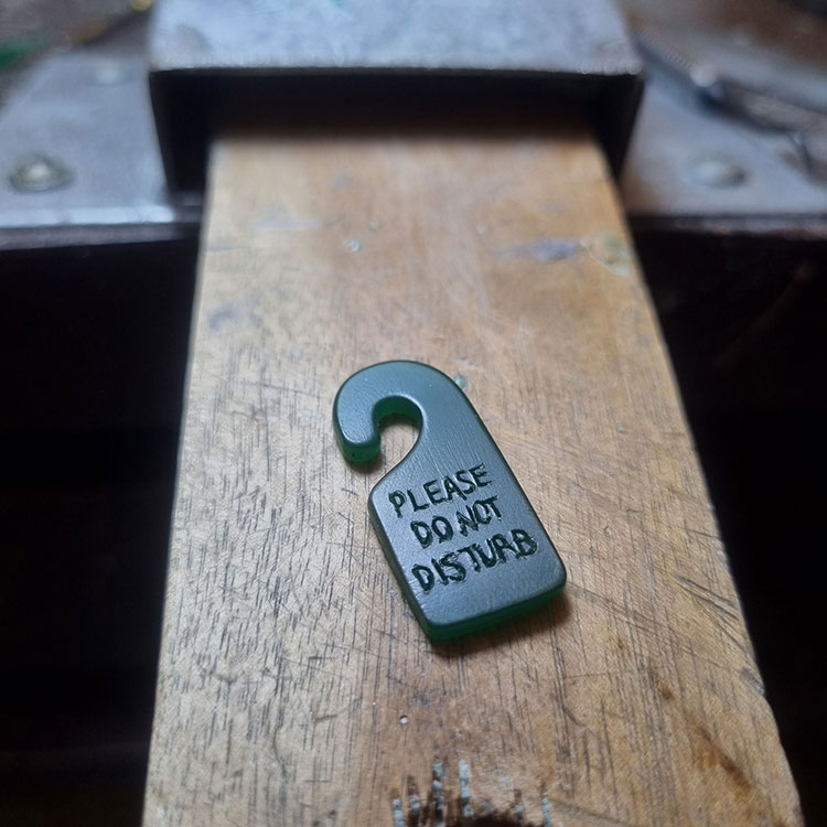 올해 여름 해외여행을 갔다가 돌아오는 비행기에서 너무 피곤했을 때, 기내식도 먹지 않고 자고 싶어 화면의 ‘DO NOT DISTURB’ 버튼을 눌렀습니다. 방해를 원하지 않는다는 ‘DO NOT DISTURB’에 호텔 도어사인 모양까지 더해지면, 의미가 더 정확하게 전달될 것 같아 꼭 만들고 싶었습니다.