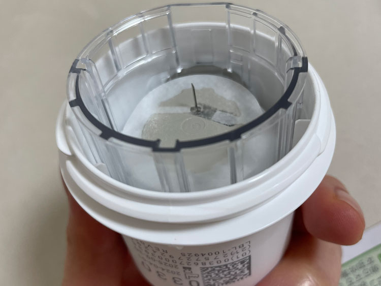 저는 국내에서 판매되고 있는 몇 가지의 연속혈당측정기 중 덱스콤(Dexcom) G7 센서를 선택했습니다. 연속혈당측정기는 체내 수분(간질액)에서 혈당을 측정하는 원리이기 때문에 손끝 채혈 방식처럼 피를 낼 필요는 없지만, 작은 침을 피부에 꽂아두어야 하긴 합니다. 생각보다 굵은 침이 있어 망설였지만, 다행히 버튼을 누르면 스프링처럼 튀어나와 꽂히는 방식이라 아프지 않게 순식간에 부착이 되었습니다.