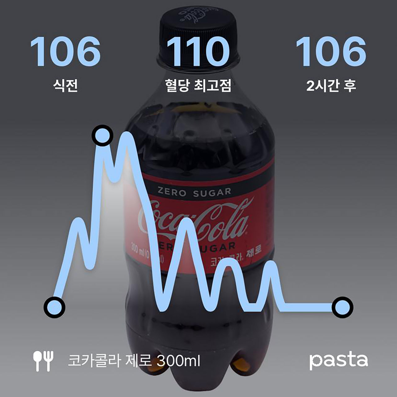 제로 콜라는 혈당이 전혀 오르지 않았습니다. 설탕이 들어가지 않으니 당연한 결과입니다. 혈당에 변화가 없는 사실이 신기하면서도 ’어딘가에는 안 좋겠지‘라는 의심을 버릴 수 없었습니다. 그래서 알아보니, 우리 몸은 제로 콜라의 인공감미료를 설탕으로 착각해 인슐린을 분비한다고 합니다. 따라서 제로 콜라와 같은 제로 식품을 장기적으로 섭취 시 인슐린 기능이 저하될 수 있다고 합니다.