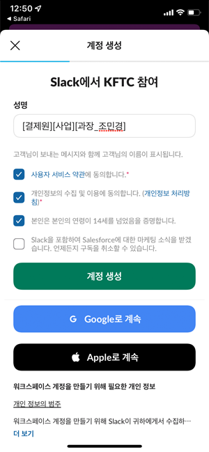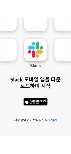 슬랙은 대표적인 메시지 기반 협업 채널입니다. 우리 원에서 쓰는 매터모스트(Mattermost, 오픈 소스 온라인 채팅 서비스)와는 쌍둥이 같은 모습을 가졌죠! 매터모스트는 서버를 보유한 사용자가 설치해서 사용하는 온프레미스 방식(On-premise, 자체적으로 보유한 서버에서 운영하는 우리 원과 같은 방식)과 SaaS(Software as a Service, 서비스형 소프트웨어)가 둘 다 가능하며, 슬랙은 서버 없이 SaaS로 사용하는 경우 공간 개설 및 계정 가입 절차가 간단한 특징이 있어 최종적으로 슬랙을 선택했습니다. 슬랙은 담당자의 업무 환경에서 웹브라우저로 접속할 수 있어 편리하지만, 금융회사 특성상 슬랙 사이트는 차단된 경우가 많습니다. 그러나 담당자 휴대전화에 슬랙 앱을 설치하면 카톡처럼 사용할 수 있습니다.