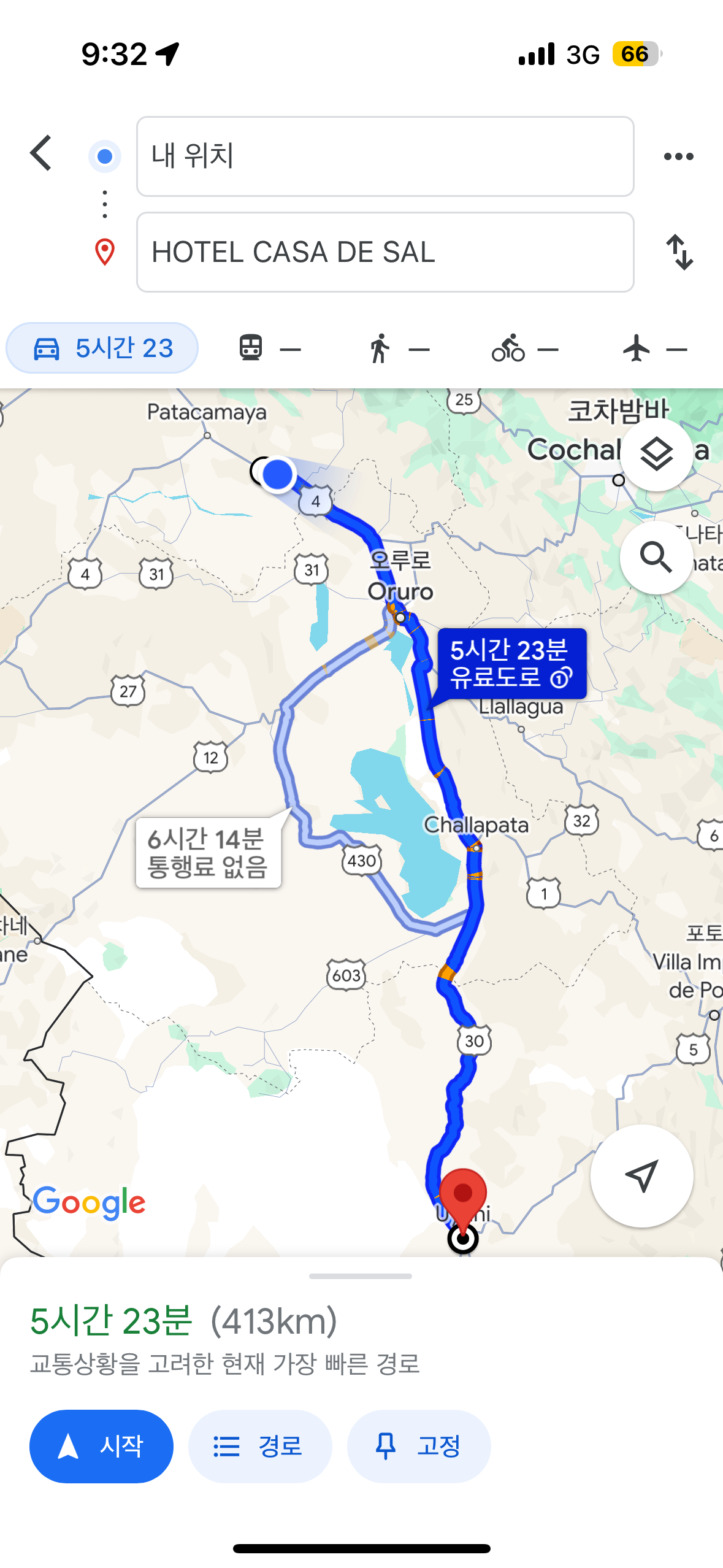 그때, 우리 팀에서 가장 실행력이 뛰어난 동기가 조용히 공항 밖으로 나가더니 택시 한 대를 섭외해왔습니다. 그렇게 우리는 라파스에서 우유니까지 썬팅하나 되어있지 않은 불편한 차로 밥도 못먹고, 화장실도 못가고 약 6~7시간의 긴 육로 여행을 시작하게 됐습니다.