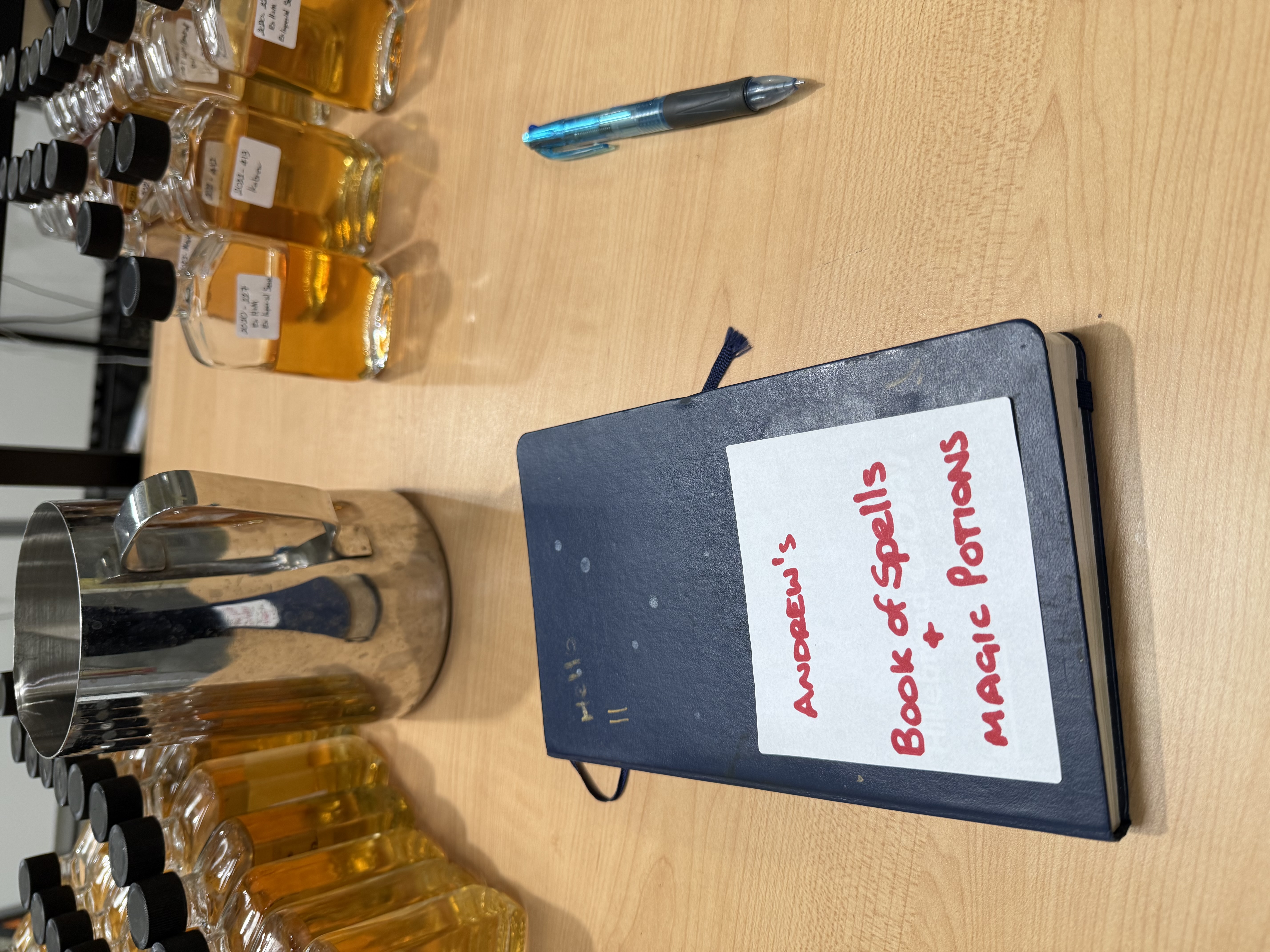 숙성고에 들어서자 오크향이 훅! 밀려왔어요. 이곳에는 스피릿 저장통과 다양한 오크통들로 가득했죠.
