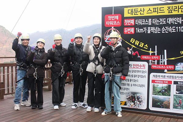 • 짚라인 타기 전에 다 같이 파이팅!