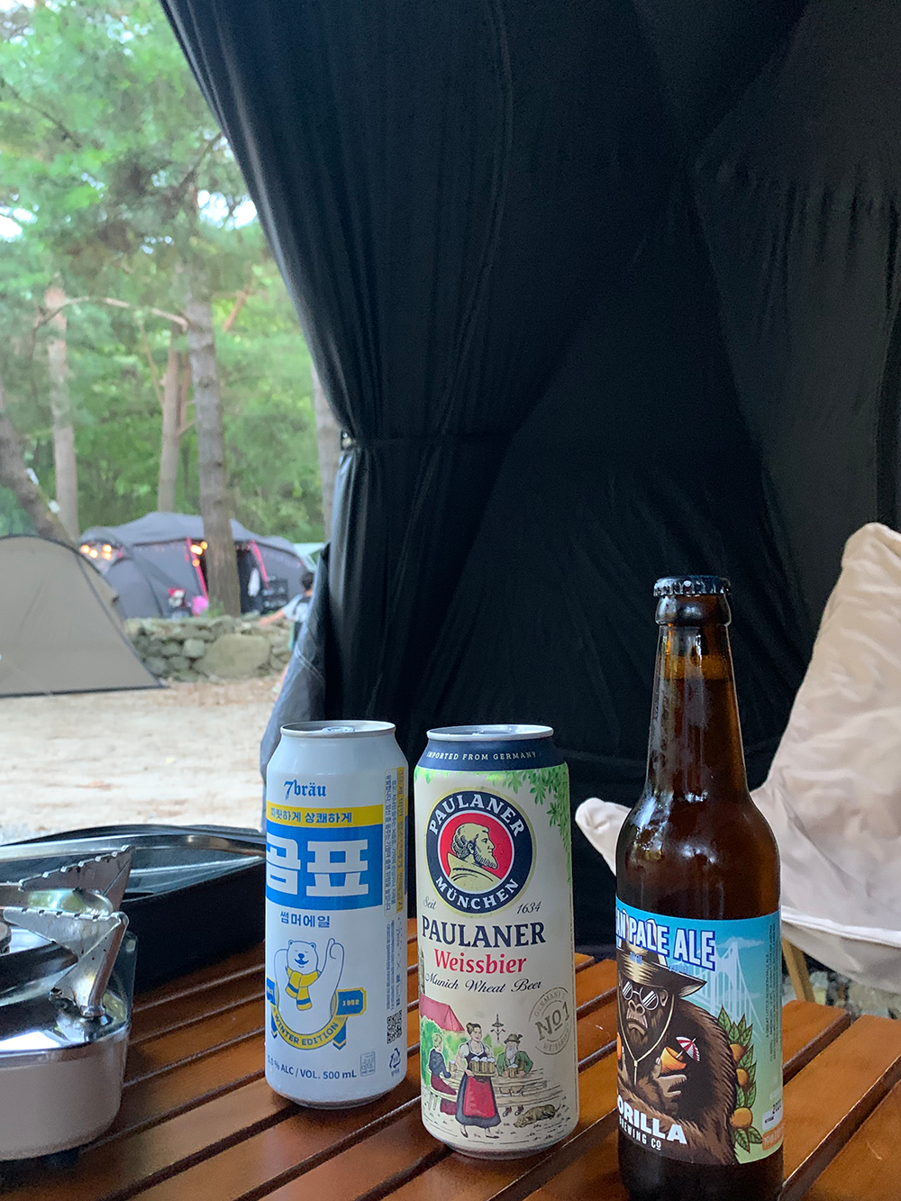 - 고된 노동 후에는 어쩔 수 없이 목을 축여야 합니다. 텐트를 다 치고 먹는 맥주는 정말 꿀맛이랍니다!