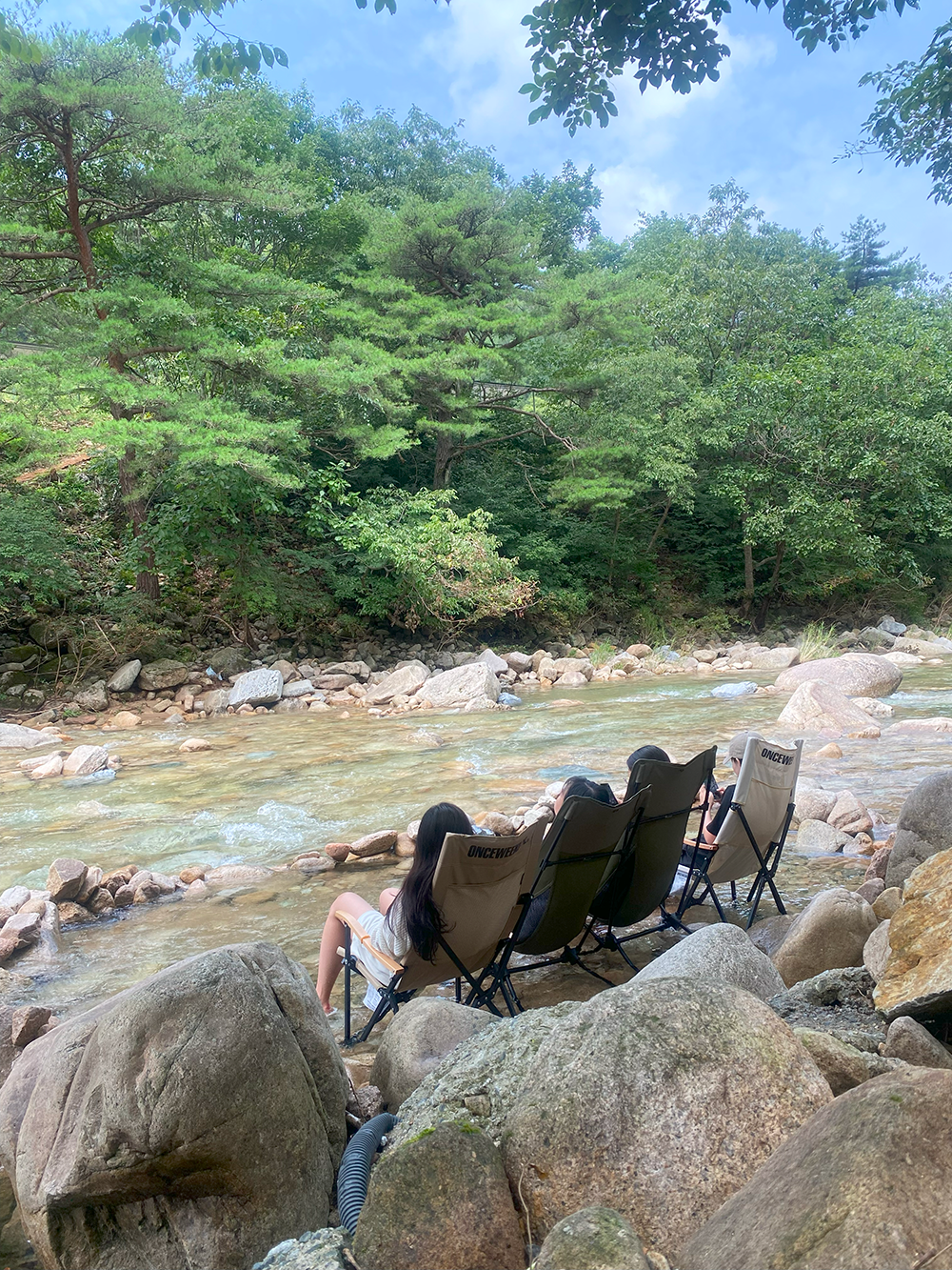 저는 특히 여름에 계곡으로 가는 캠핑을 정말 좋아하는데요, 발만 담그고 있어도 좋고 튜브 끼고 들어가는 건 더 좋아요!