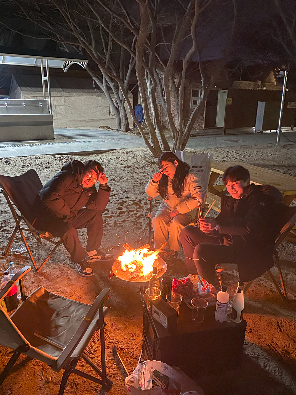 - 저녁을 먹고 나면 캠핑의 꽃, 캠핑의 피날레 불멍 타임입니다! 화로 주위로 둘러앉아 불멍을 하며 도란도란 얘기하는 이 시간이 너무 좋아서 캠핑을 계속하게 되는 것 같아요.