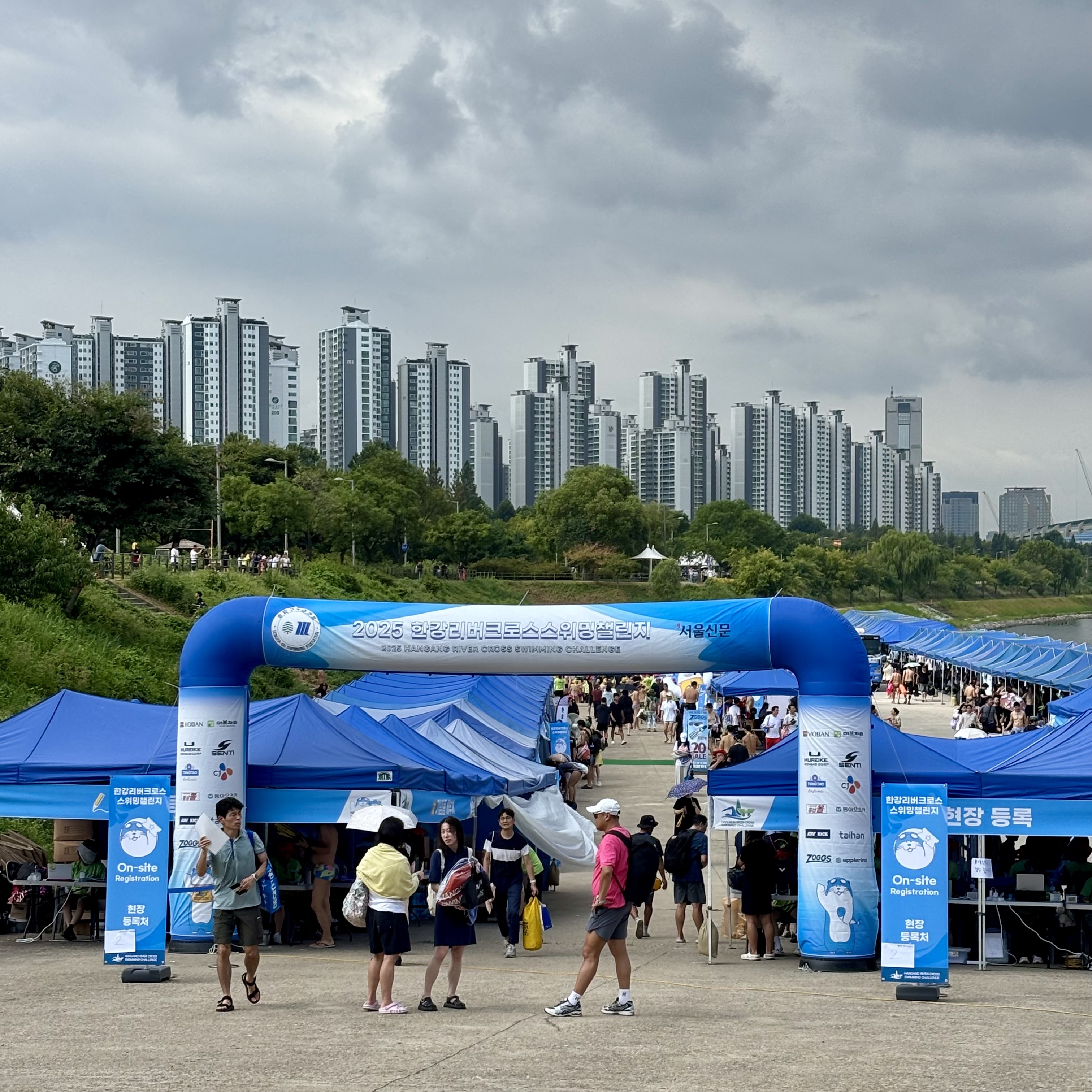 러닝은 다양한 대회가 있어서 취미 러너들도 많이 참여를 하는 걸로 알고 있는데 러닝과 다르게 수영은 동호회에 가입해야만 참가할 수 있는 대회가 많았어요. 수영장에서 기록을 재는 대회는 참가가 어려울 것 같아서 누구나 쉽게 참가 가능한 대회를 찾아보다가 한강을 수영으로 건너는 ‘한강 크로스 스위밍 챌린지’(줄여서 한크스)를 발견하게 되었습니다.ʕ ꈍܫꈍʔ