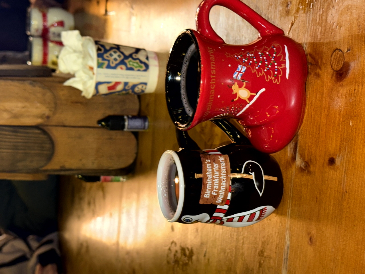 먼저 방문했었던 친구가 “버밍엄 크리스마스 마켓의 뱅쇼가 인생 뱅쇼다!”라고 내내 노래를 불렀었던 기억이 있는데요. 저도 설레는 마음으로 따뜻한 뱅쇼를 주문했습니다! (민증 검사 꿀팁! 기쁜 표정으로 당당하게 건네면, 한국 주민등록증을 내밀어도 통과할 수 있습니다.ㅎㅎ) 귀여운 컵에 담겨 나오는데, 보증금까지 함께 지불한 거라 마음에 들면 그대로 집에 가져갈 수도 있답니다.