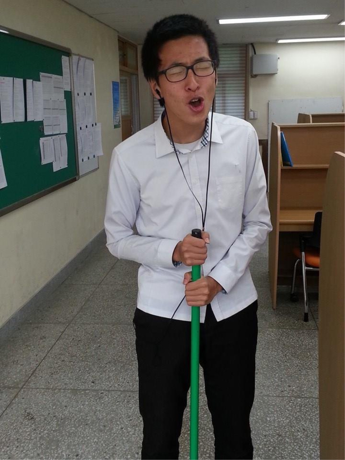 사진(너무 못생긴 거 양해해 주시기 바랍니다;; 악플은 달지 말아 주세요.ㅠㅠ)처럼 고등학교 때부터 밀대 걸레를 마이크 삼아 이어폰을 끼고 부를 만큼 노래를 좋아했습니다.