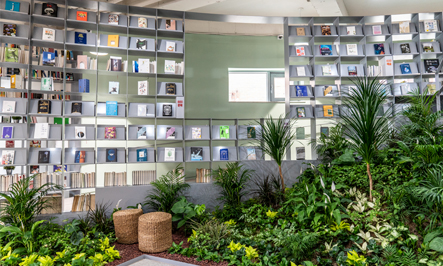 도서관은 입구는 바로 2층과 연결되는데, 들어서자마자 실내 정원이 사람들을 맞이한다. 정원 앞에 앉아 쉬거나 독서를 해도 좋지만 원형 서가를 따라 천천히 내려오면 더 넓은 실내 정원이 놓인 1층 커뮤니티실에 닿는다. 곳곳에 자리한 실내 정원의 식물들이 공간 전체에 싱그러움과 청량함을 뿜어낸다.