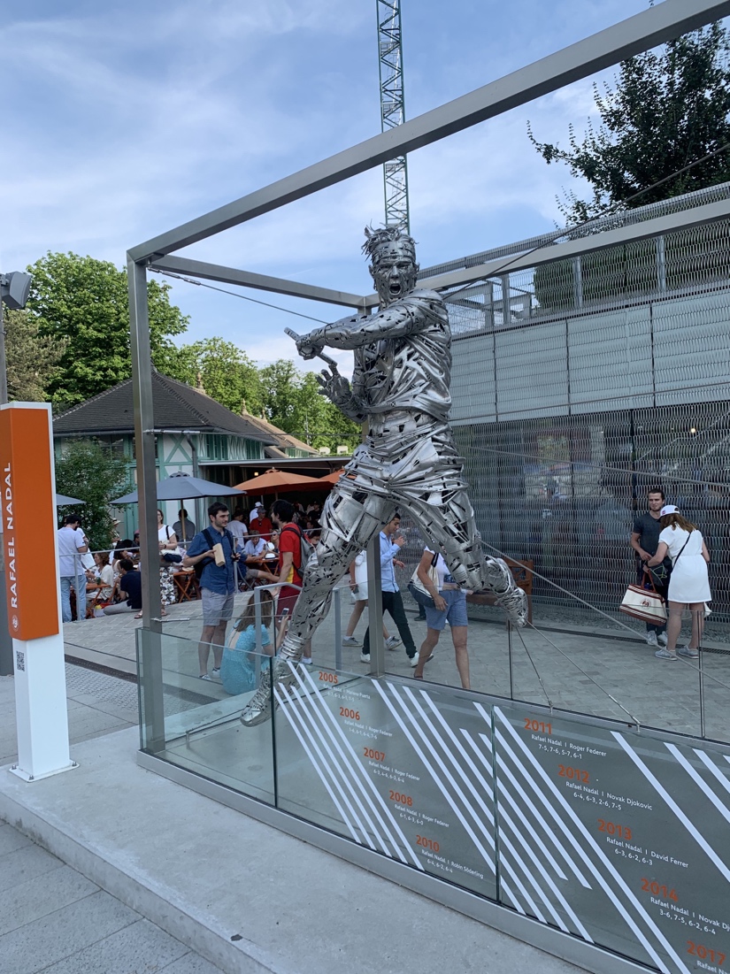 롤랑가로스의 스타는 바로 스페인 테니스 선수인 라파엘 나달이라 할 수 있다. 나달은 롤랑가로스에서만 14번의 우승을 차지하며 최다 우승기록을 두고 있다. 이를 기념하기 위해 프랑스테니스협회는 경기장 한쪽에 나달의 기념상까지 설치하였다. 유명한 페더러, 조코비치도 클레이코트에서는 나달에게 번번이 패배했었다고 하니, 오직 나달의 기념상만 만들어 둔 것이 이해된다.