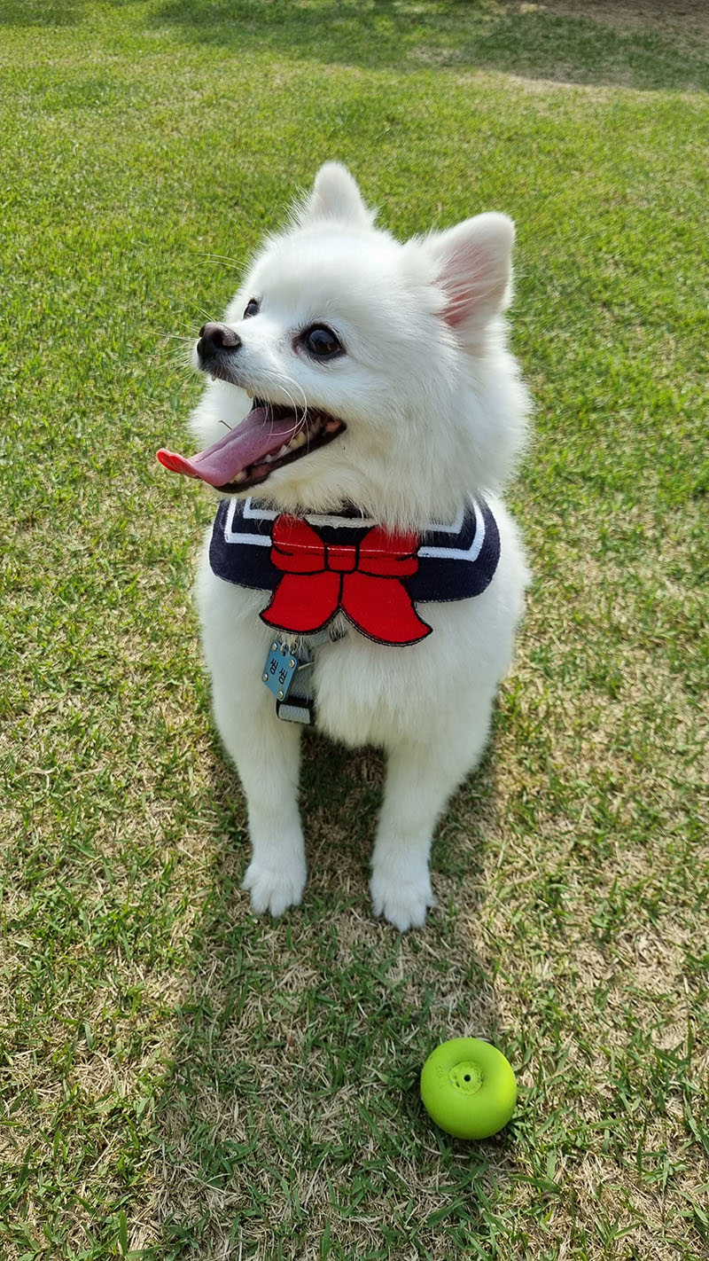 씽씽이는 반려인과 함께 샌디에고 유학을 다녀온 국제파로서, 영어와 한국어에 모두 능통(?)한 아주 특별한 댕댕이입니다. 웃을 때 보이는 덧니와 새하얀 털, 쫑긋한 귀가 매력적이죠! 가장 좋아하는 것은 공놀이인데, 어서 공을 던져달라고 앞발을 동동 구르는 모습이 정말 귀엽습니다. 싫어하는 것은 고양이입니다. 딱히 고양이한테 해코지당한 적도 없는데 엄청나게 싫어하는 걸 보면 본능인지도 모르겠습니다. 폼피츠답게 성격이 예민하고 겁이 많은 탓에 힘들 때도 있지만, 그저 건강하게 오래 같이 살아주면 좋겠습니다. 씽씽 행복하자!
