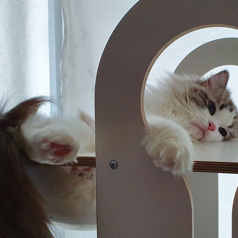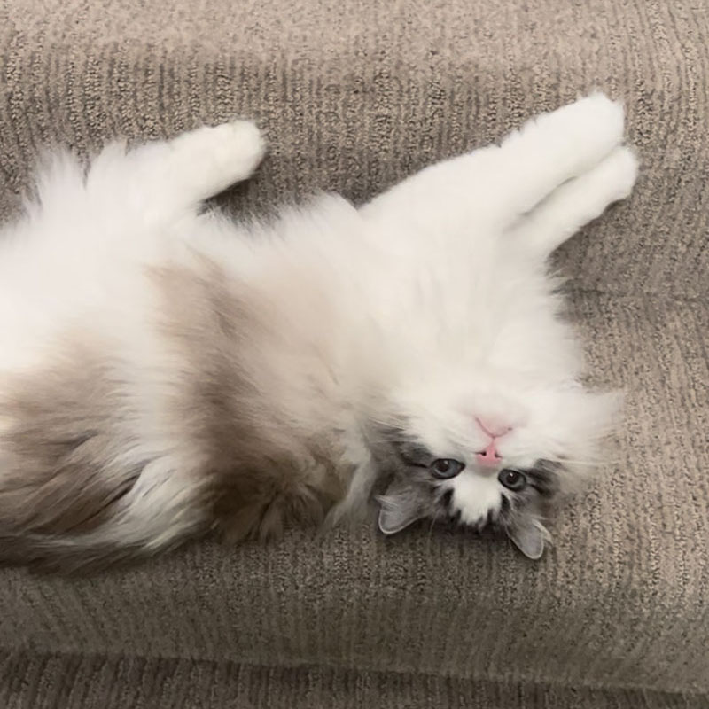 모카는 파란 눈에 길고 부드러운 털을 가진 랙돌입니다. 노스캐롤라이나에서 태어난 미국 국적의 애교 많은 수다냥이예요. 낯선 사람이 와도 일단 드러누워 핑크 뱃살을 공개하는 것으로 보아 성격은 파워 E!!! 하지만 아빠 집사한테는 아직도 낯을 가린답니다. 아마도 ‘엄마 집사 >>> 츄르=장난감 >>> 아빠 집사’ 순으로 좋아하는 것 같아요... 강아지처럼 이름을 부르면 달려오지는 않지만 하루 종일 누워있기, 하고픈 것 하게 해줄 때까지 떼쓰기, 엄마 집사 퇴근하면 마중 나가기, 골골송 부르며 꾹꾹이 하기는 잘한답니다. 모카야! 아무래도 좋으니 지금처럼 늘 함께하자!